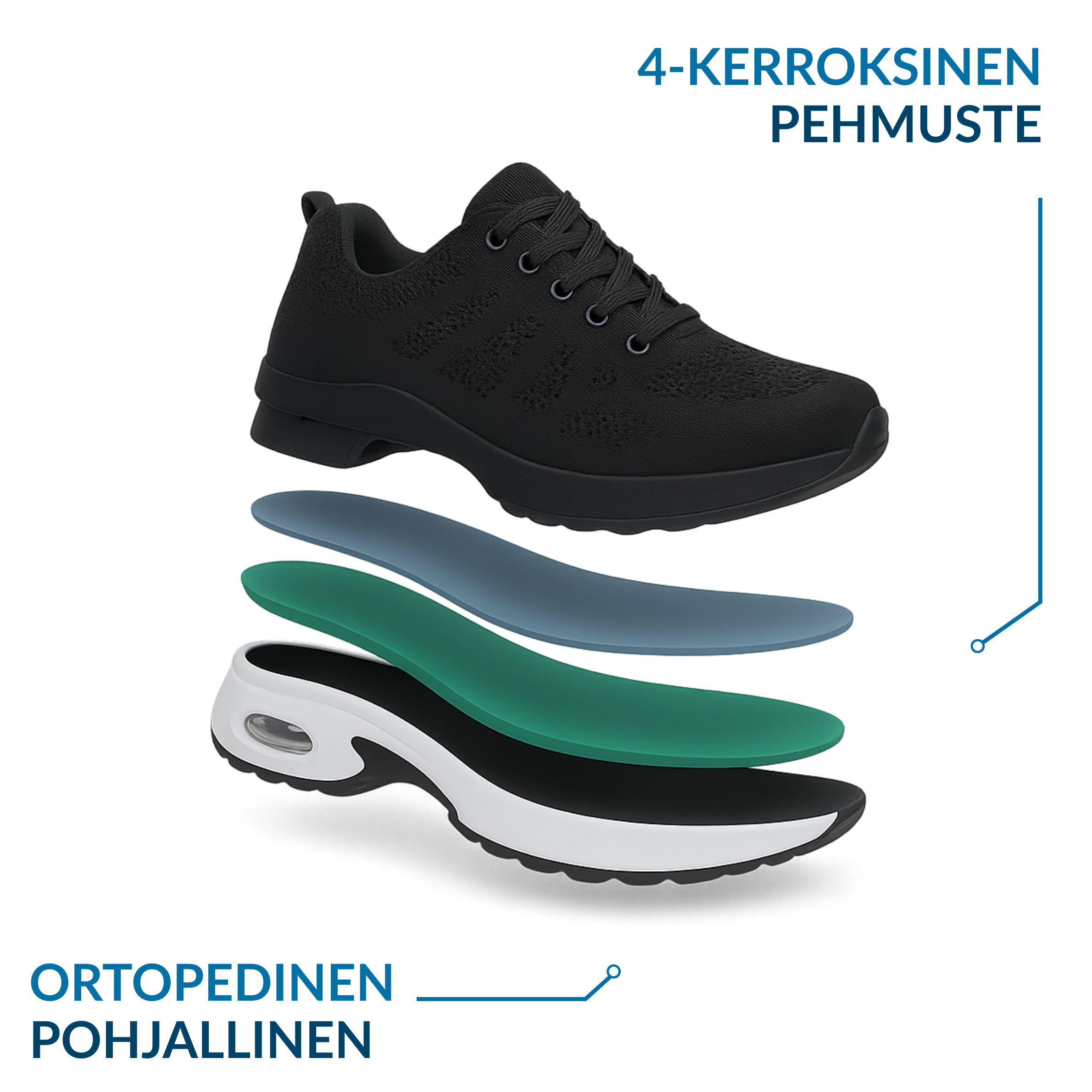 Ortopediset kenkämme sisältävät lääketieteellisesti suunnitellun 4-kerroksisen ortopedisen pohjallisen, joka tarjoaa jaloillesi vertaansa vailla olevaa tukea ja mukavuutta.