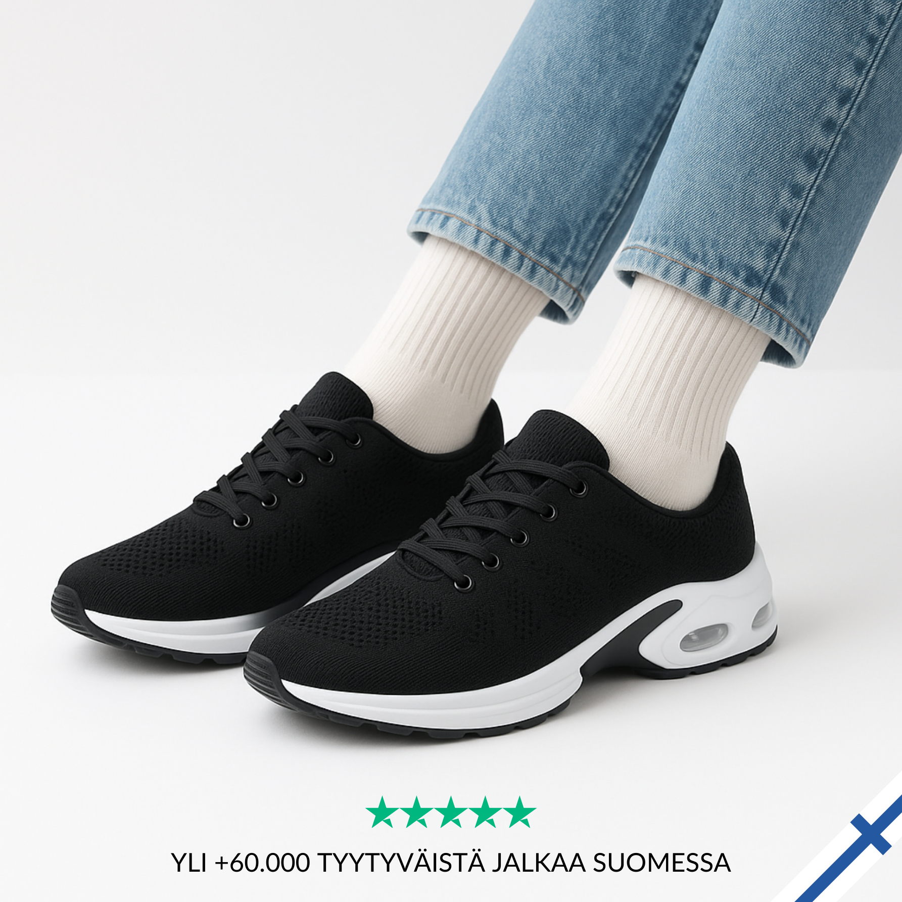 Nämä kengät ovat uskomattoman kevyet ja joustavat. Kävelen pitkiä matkoja ilman kipua jaloissa. Todella tyytyväinen ostokseen!